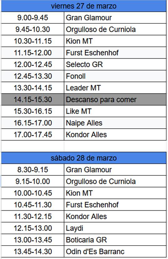 Este es el horario definitivo previsto para las diferentes sesiones.